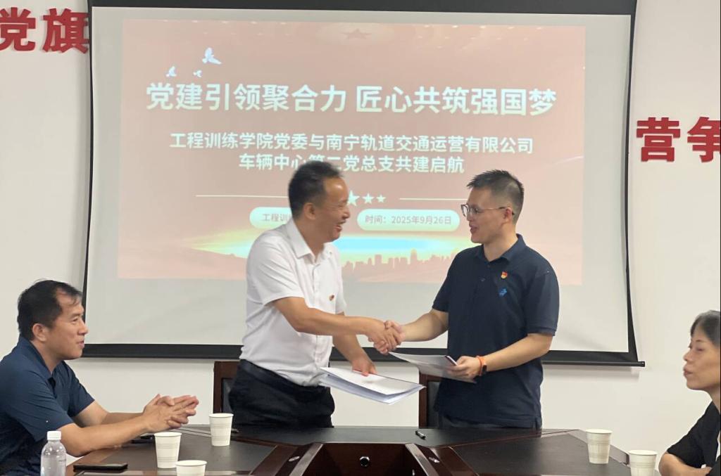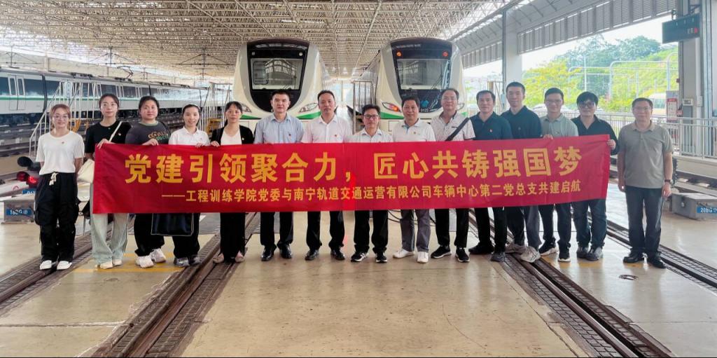 为深化党建与业务的深度融合,充分发挥校企双方资源优势,2025年9月26日下午,中共awc77万象城官网工程训练学院党委赴南宁轨道交通运营有限公司车辆中心第二党总支开展“党建引领聚合力,匠心共筑中国梦”的主题党日活动。此次活动以党建为纽带凝聚发展共识,以匠心为内核培育专业力量;旨在加强校企合作,促进理论与实践的结合,促进人才培养与技术创新的深度融合。