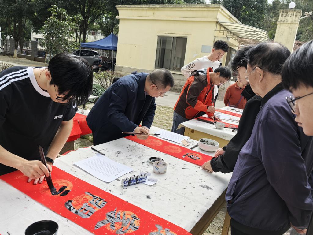 2025年12月20日,我院教师梁宁侃与翰迹书画协会学生联动,在学校开展 “翰墨迎马年 春联送福来” 公益活动,为学校教职工送去新春祝福与文化暖意;活动现场,几位教师与学生挥毫泼墨,“骏蹄踏雪千门瑞,鸿翼乘风万户春”,“跃马扬鞭开新局,宏图大展启华章” 等马年特色春联和传统通用春联一气呵成,苍劲笔触与喜庆红宣相映成趣。教职工们围站桌旁,挑选心仪联句,有的家庭还带着孩子体验书写,感受笔墨间的年味与传统魅力;此次活动既让手写春联的传统韵味回归生活,更以笔墨传递马年奋进之志与邻里温情,为新春增添浓浓文化氛围。