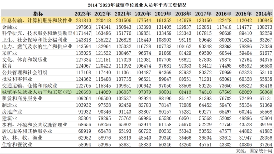 国家统计局2024年5月公布2023年城镇单位就业人员平均工资数据,信息传输、软件和信息技术服务业在城镇非私营单位和私营单位中的平均工资水平仍然最高,分别为231810元、129215元,连续八年排名第一。