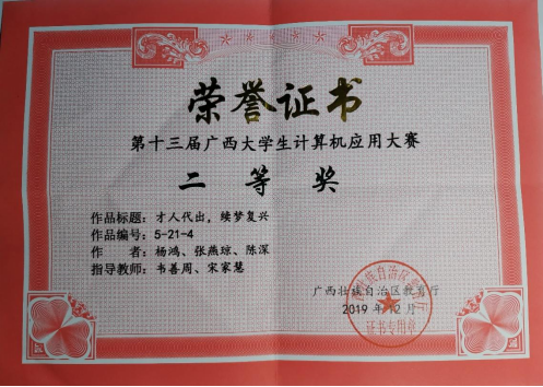 2019年第十三届广西大学生计算机应用大赛二等奖
