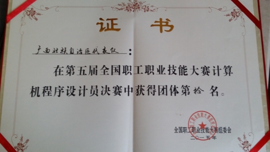 2015年第五届全国职工职业技能大赛计算机程序设计员决赛荣获团体第10名