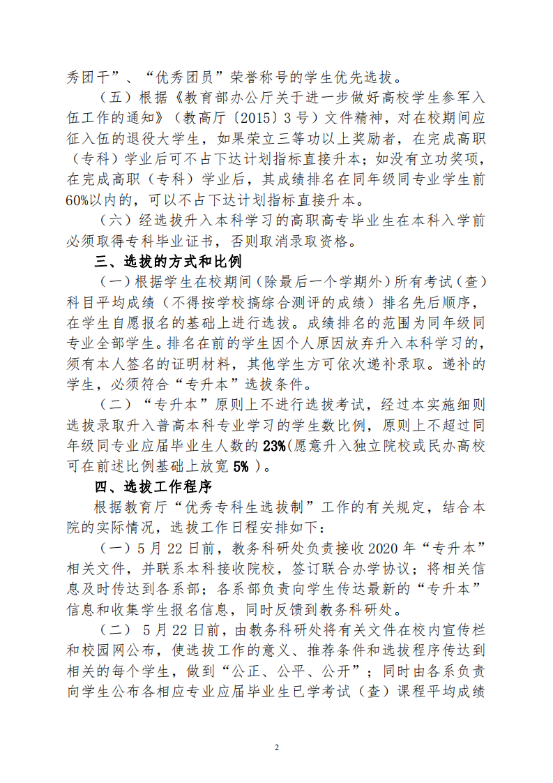 awc77万象城官网2020年选拔优秀高职毕业生“专升本”工作实施细则