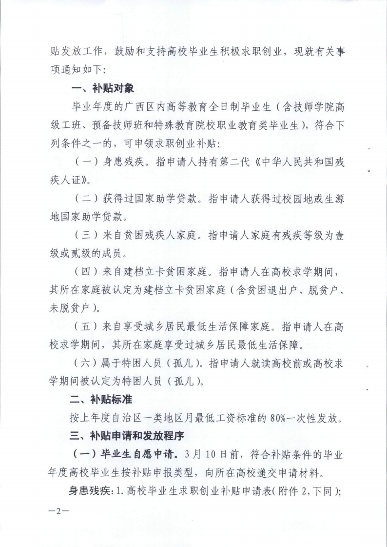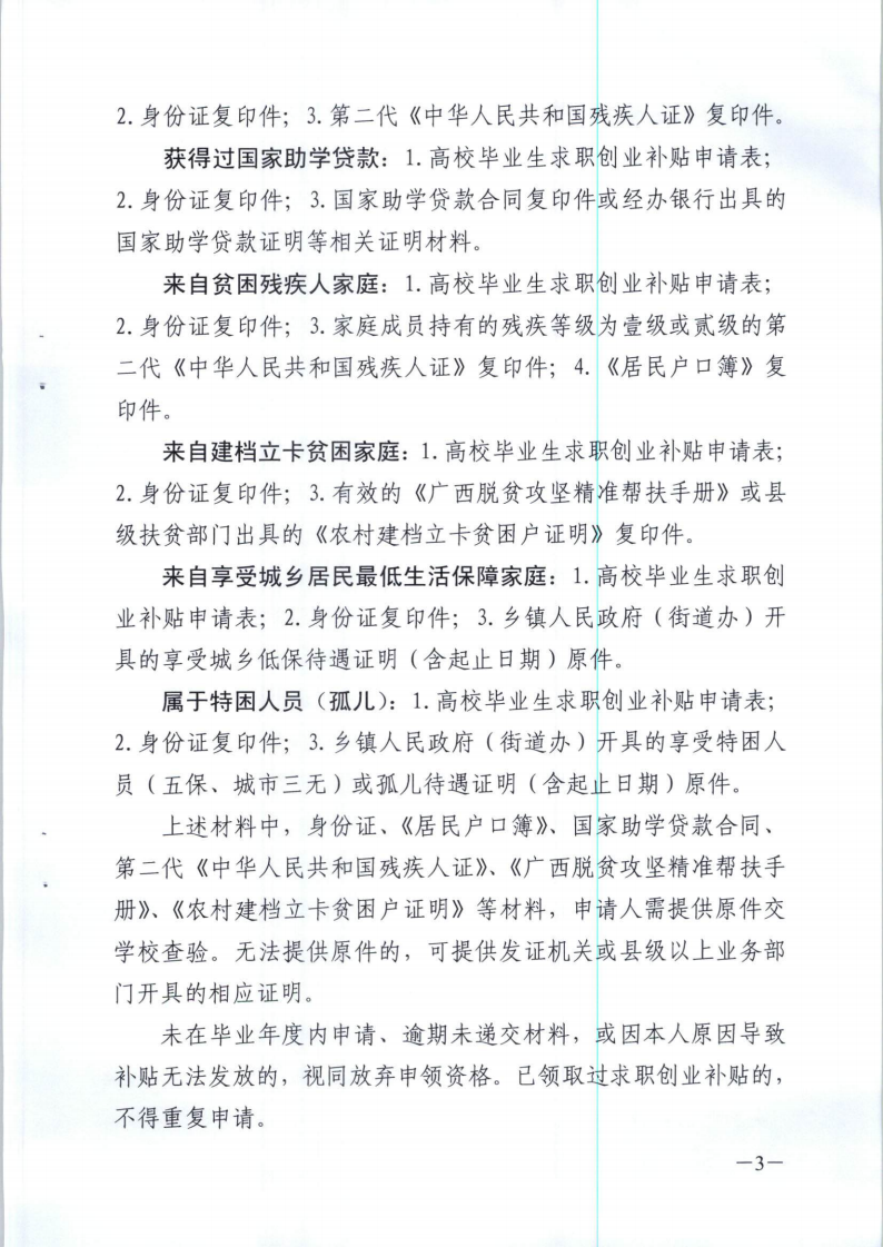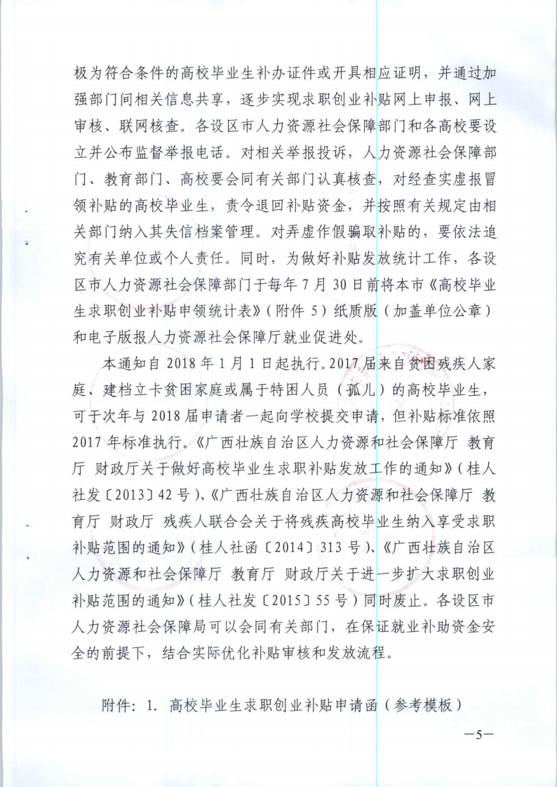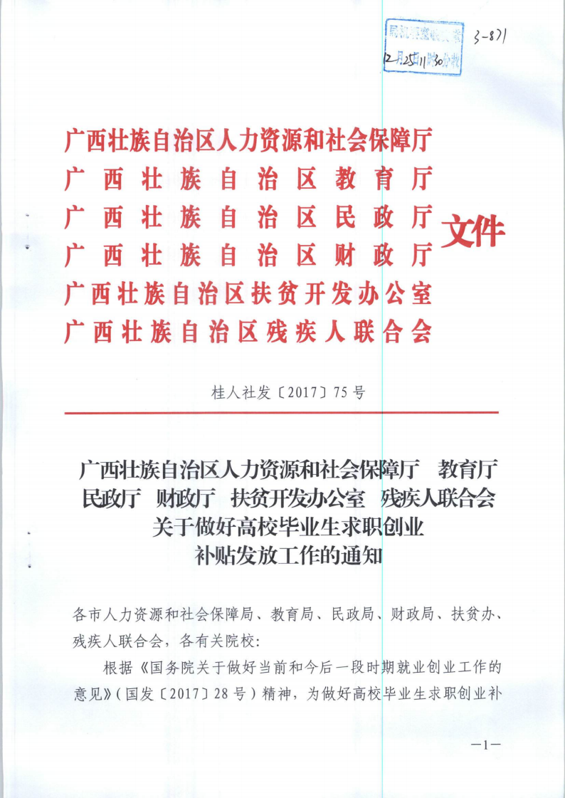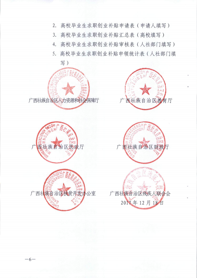 广西壮族自治区人力资源和社会保障厅 教育厅 民政厅 财政厅 扶贫开发办公室 残疾人联合会关于做好高校毕业生求职创业补贴发放工作的通知(桂人社发