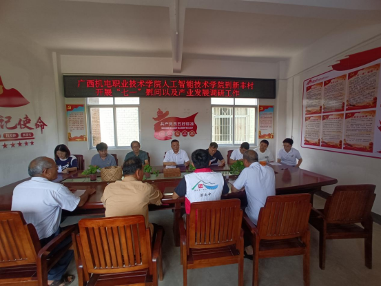 接下来,黄日木一行与新丰村村委进行座谈交流。第一书记梁雨中同志对新丰村的基本情况进行了介绍,黄日木对新丰村人均年收入、全村总劳动力人数、外出务工人数、持证残疾人就业等情况进行了深入了解。新丰村村支书对学院的到来表示热烈欢迎,他充分肯定了梁雨中同志的工作。