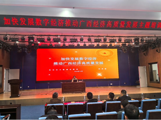 主题培训围绕数字经济展开,邀请了自治区发展和改革委员会副处长何弄影和广西交通职业技术学院的李先会两位专家授课。何弄影副处长以《加快发展数字经济推动广西经济高质量发展》为题,从政策角度阐述了广西在发展数字经济中的战略规划和重点领域。广西交通职业技术学院的李先会老师则以《AI技术引领未来智能制造》为主题,重点探讨了人工智能技术在智能制造领域的创新应用,深入分析了智能制造发展的趋势和挑战,为学员拓展了行业视野。