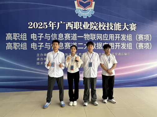 2025年4月3日,自治区教育厅公布了2025年广西职业院校技能大赛获奖名单,人工智能技术学院物联网应用技术专业学生在软件测试组、工业互联网集成应用组和物联网开发组等高职组赛项的比赛中表现优异,斩获1项银奖和2项铜奖。