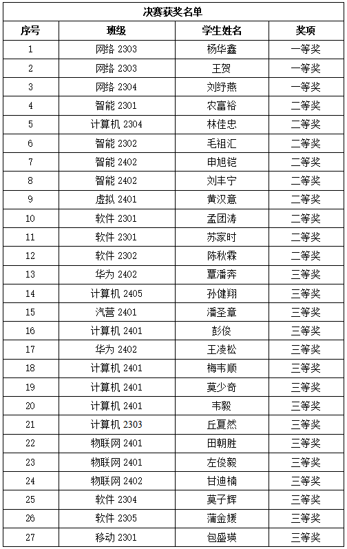 本次大赛不仅深化了学生对专业知识的实践应用,更激发了他们对计算机技术的探索热情。未来,学院将继续秉持“以赛促学”的理念,引导学生在专业实践中不断锤炼技能、增长才干。相信在学院的精心培育下,将有更多青年学子以扎实的技术本领,在科技强国的征程中贡献青春力量,书写属于他们的辉煌篇章。
