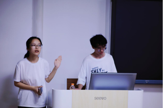 最后,学生心理自助组织成员宁洁洁结合同学们常见的“技术焦虑”“求职挫败感”,从如何应对实习就业压力、解压方法与技巧等方面分享心理健康的自我管理方法,并带领现场同学进行压力释放互动练习。