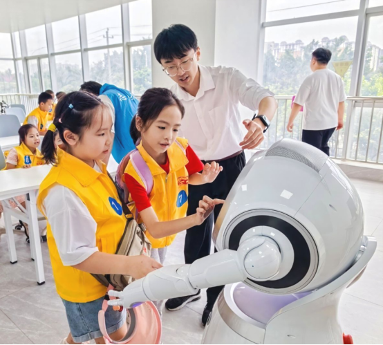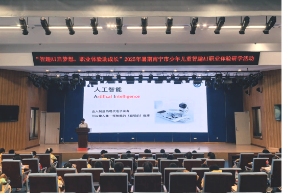 7月31日,由南宁市青少年活动中心主办、我院承办的“2025年暑期南宁市少年儿童智趣AI职业体验研学活动”在江南校区顺利开展。来自南宁市的81名小学生走进校园,沉浸式体验人工智能、虚拟现实等前沿技术,在趣味互动中开启AI科技探索之旅。