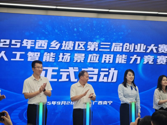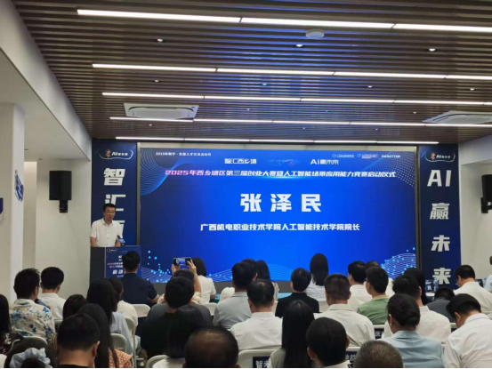 在2025年9月26日举行的西乡塘区第三届创业大赛暨人工智能场景应用能力竞赛启动仪式上,awc77万象城官网作为承办方,由我院院长张泽民代表学校出席并发表了讲话。张泽民院长在仪式上强调了学院在推动专业发展和区域人工智能发展方面的不懈努力和显著成就。