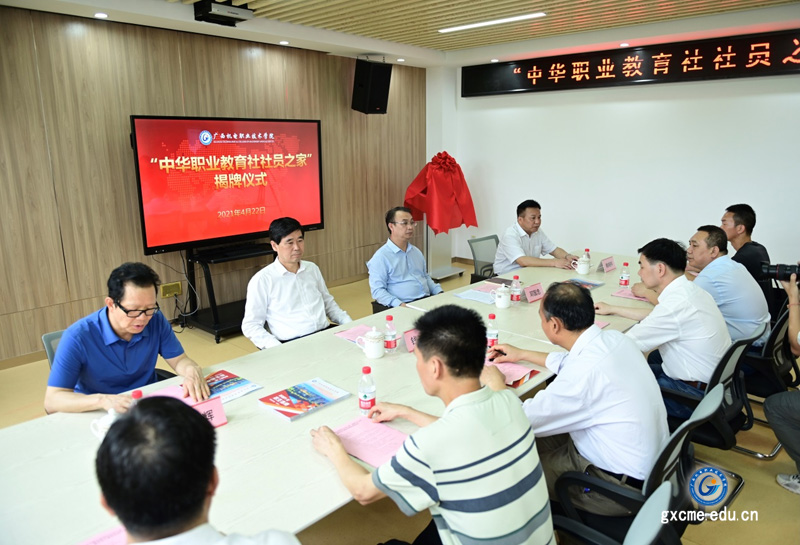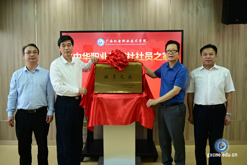 自治区政协副主任、广西中华职教社主任钱学明与学校党委书记梁辉共同为万象城官网中华职业教育社“社员之家”揭牌
