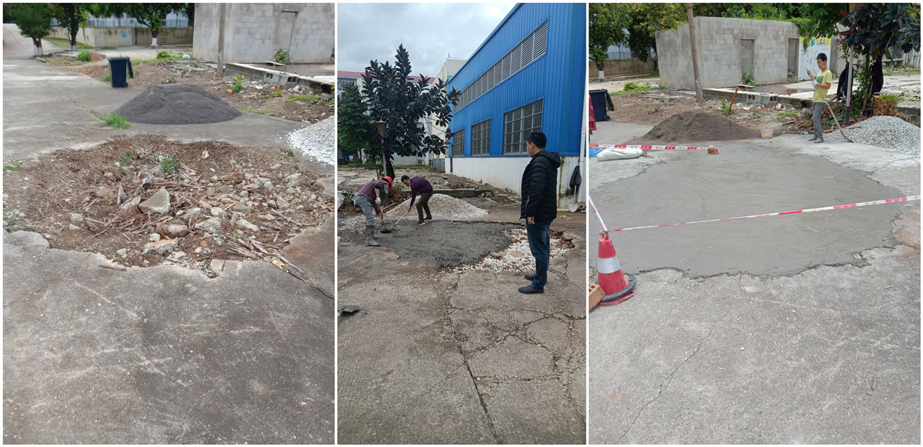 原计划建设4#师生公寓,需迁移基础实训中心通道处榕树一棵,投资单位迁移后,留下一个直径1.5米左右的树坑,阻碍行人、车辆通行,存在安全隐患。我处于近期组织维修人员对树坑进行回填,确保了行人、车辆出行安全、顺畅。