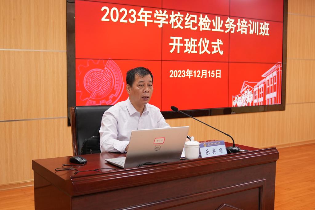 培训班开班式上,校党委委员、纪委书记乐其顺结合高校特点与万象城官网实际,从提高政治站位,把准监督执纪的“风向标”;保持对党绝对忠诚,夯实立根固本的“压舱石”;强化责任担当,守住立信立威的“定盘星”;练就过硬本领,磨砺监督执纪的“金刚钻”;带头严于律己,筑牢清廉正直的“防火墙”等五个方面提出明确要求,强调全校纪检干部永葆自我革命精神,增强斗争精神和斗争本领,凝心聚力深化推进清廉学校建设。