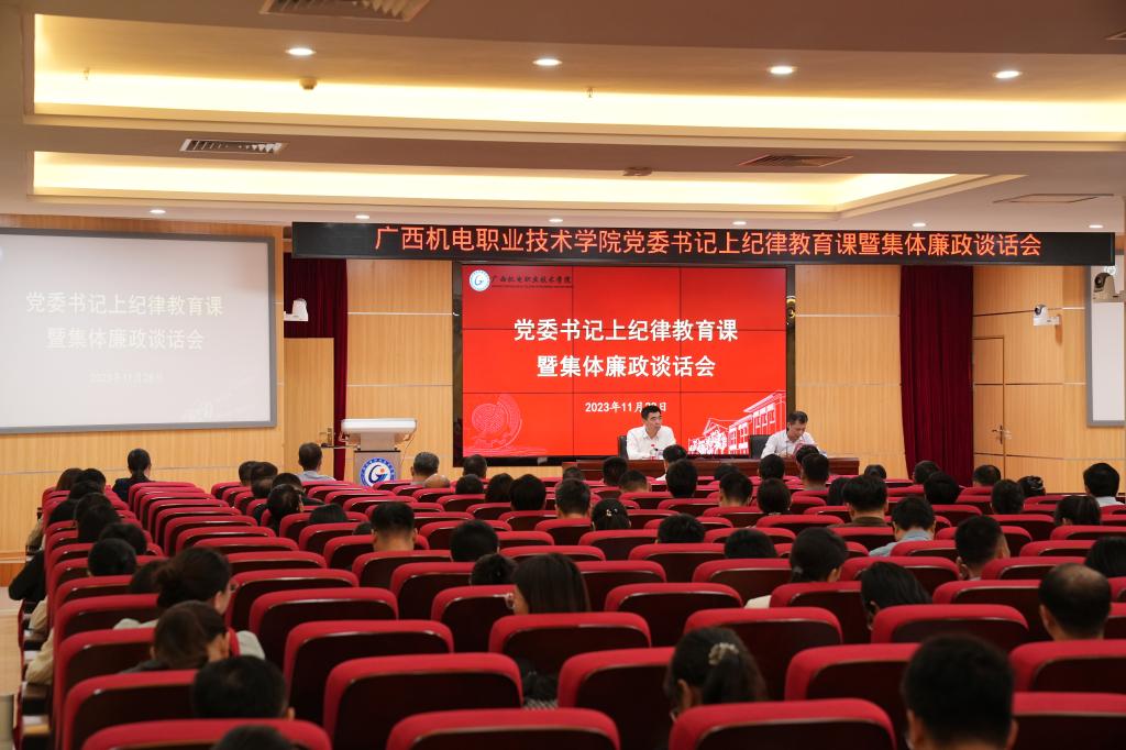 11月28日,学校举办领导干部纪律教育课暨集体廉政谈话会。学校党委书记黄小敬以“守纪律讲规矩知敬畏 做忠诚干净担当好干部”为主题,为学校领导班子成员、全校科级以上干部讲授纪律教育专题党课,并与全体干部廉政谈话。会议由学校纪委书记乐其顺主持。