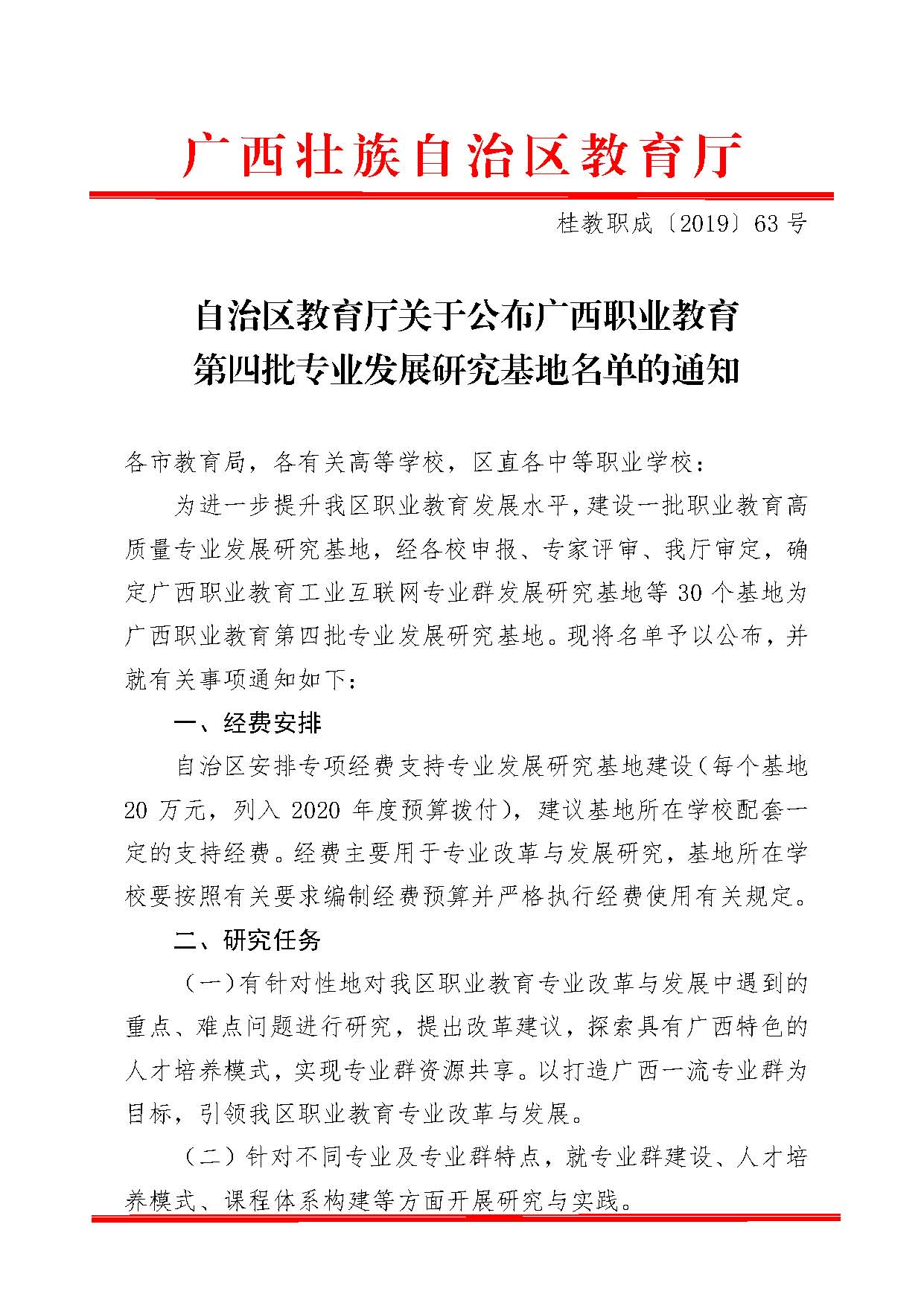 关于公布广西职业教育第四批专业发展研究基地名单的通知