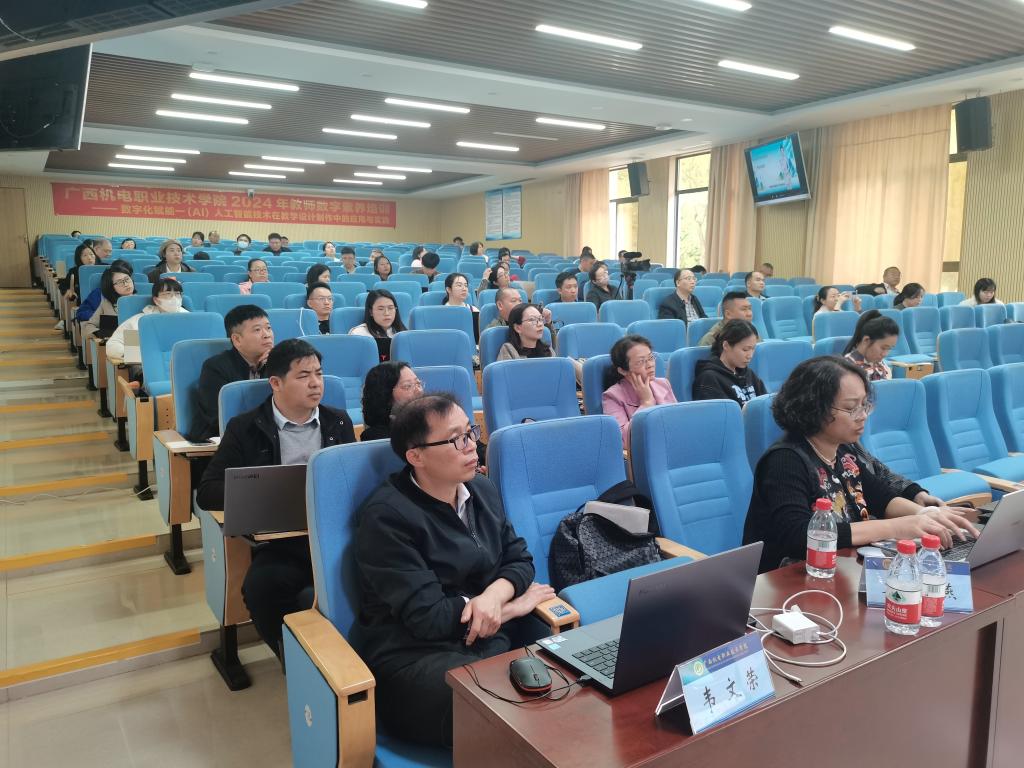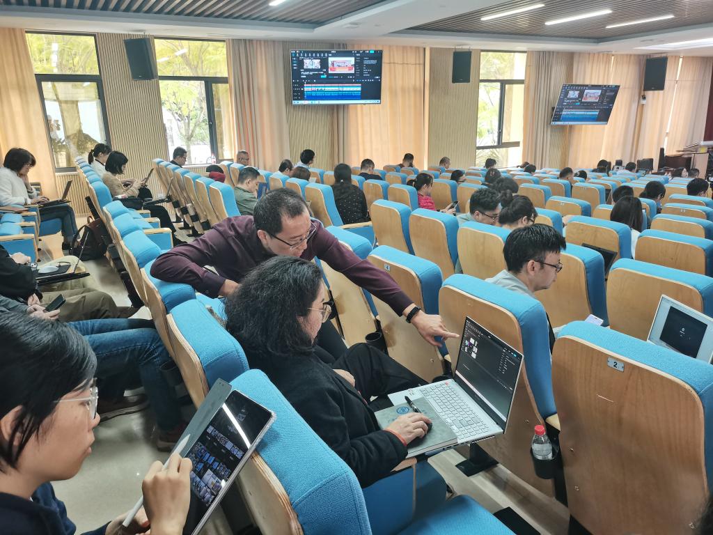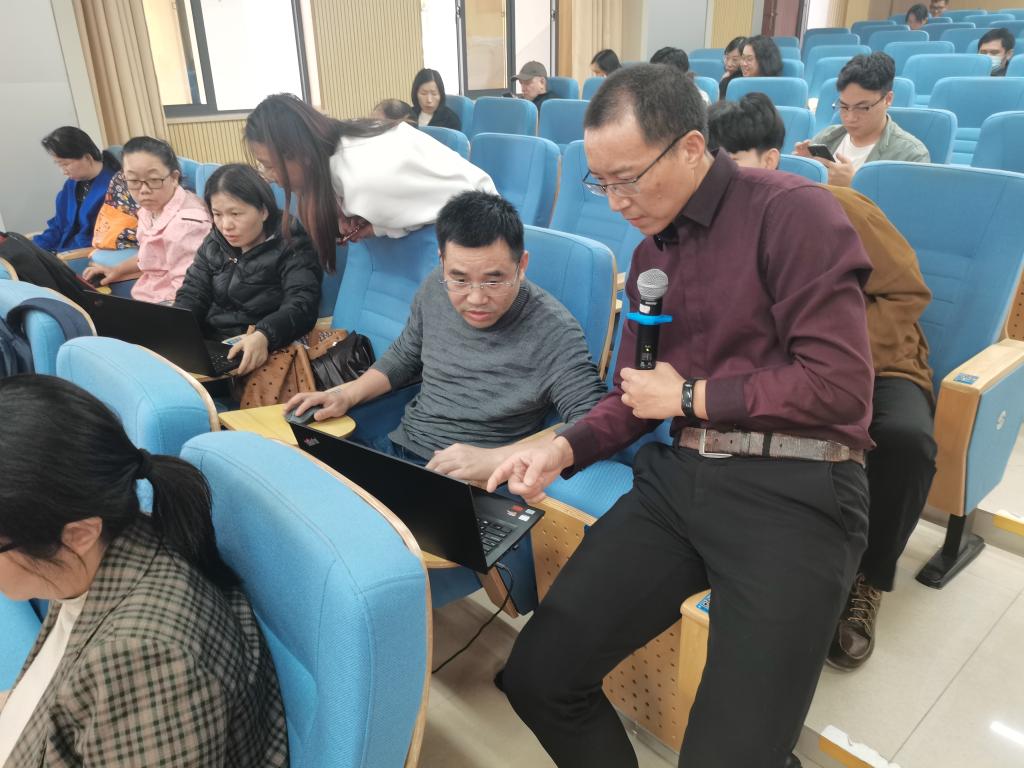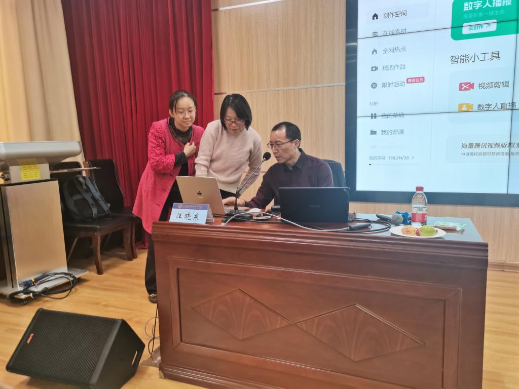 本次培训的主题是“数字化赋能—(AI)人工智能技术在教学设计制作中的应用与实践”,全校共100余人参加。受邀专家为华南师范大学教育信息与技术学院博士、教育部教育管理信息中心特聘专家汪晓东教授。课程内容围绕:AI制作教学资源、AI辅助教学设计、AI强化教学支持、AI时代教学变革等开展讲授。汪教授生动丰富有趣的课程,现场实操演练的模式,让老师们通过1天的培训学会将人工智能技术合理应用到教学设计制作中,同时为做好在线精品课程打下良好基础,收获满满。