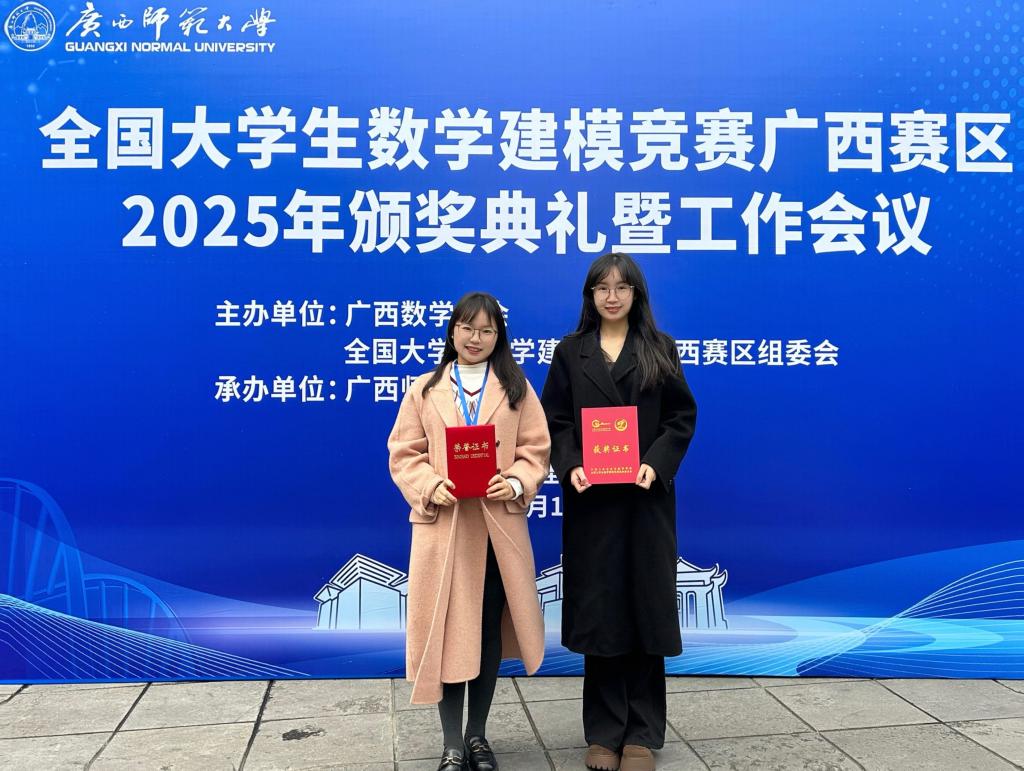 在全国大学生数学建模竞赛广西赛区2025年颁奖典礼暨工作会议上,万象城官网龙艳萍、吴雨珊两位教师积极参与讨论,学习借鉴兄弟院校在竞赛组织、指导培训等方面的先进经验,为今后进一步提升竞赛质量与育人实效积累了宝贵经验。未来,学校将持续以学科竞赛为重要载体,深化“以赛促教、以赛促学、以赛促创”的育人机制,推动竞赛成果反哺教学实践,助力更多学子在学科实践中锻炼成长,为学校人才培养高质量发展持续赋能。