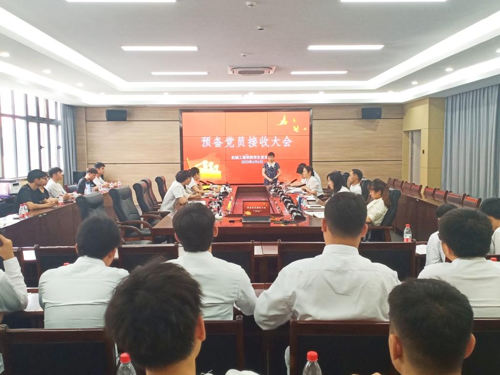 机械工程学院学生党支部深入开展学习贯彻习近平新时代中国特色社会主义思想主题教育,贯彻落实《中共中央关于党的百年奋斗重大成就和历史经验的决议》要求,不断吸收优秀青年加入,于2023年6月6日,在笃行楼507会议室召开支部党员大会,讨论研究接收26名预备党员事宜,大会严格按照《党章》和《中国共产党发展党员工作细则》规定的程序进行。