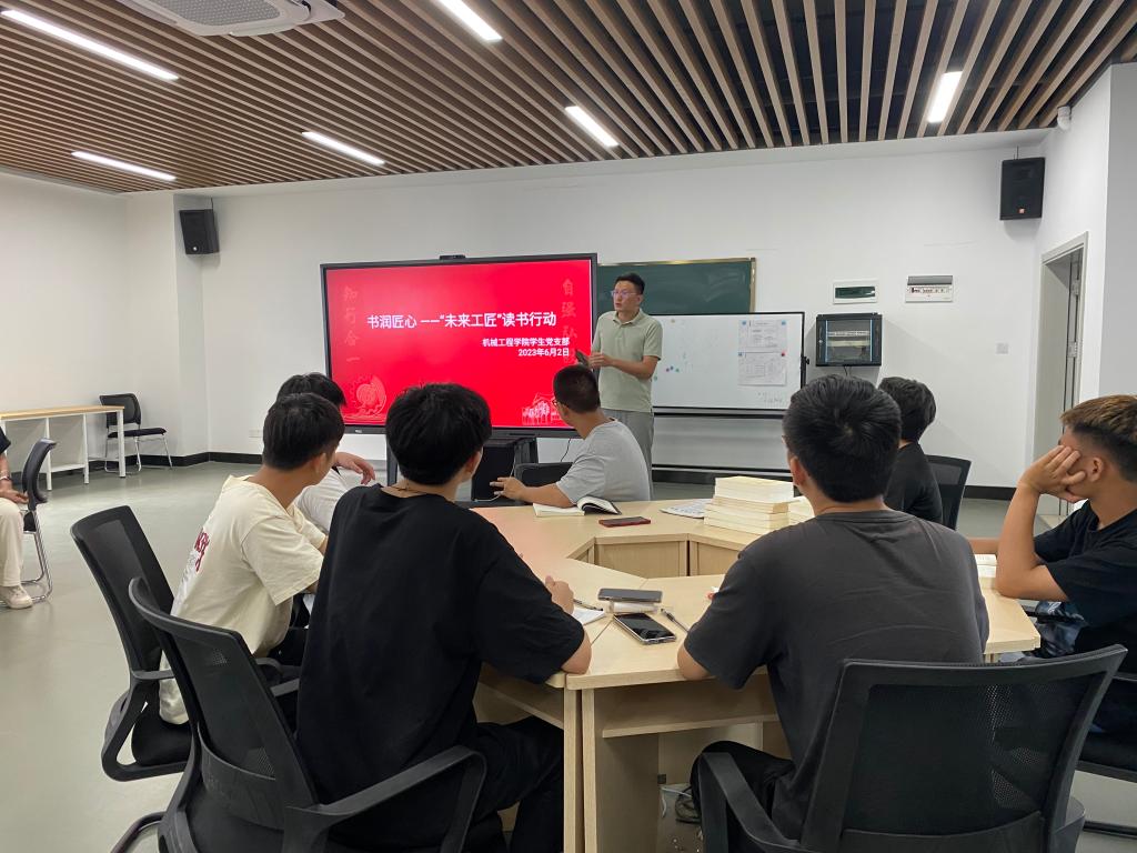 为深入学习贯彻习近平新时代中国特色社会主义思想主题教育,落实立德树人根本任务,加强大学生德育和思想政治教育工作,培养德技并修的高素质技术技能人才,机械工程学院学生党支部于2023年6月2日在笃行楼317教室开展了“未来工匠”读书行动。