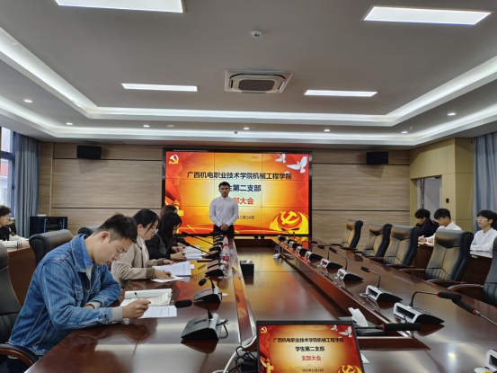 11月14日上午,机械工程学院学生第二党支部委员会在笃行楼507会议室召开支部大会,对接收陆庭欢同志为预备党员事项进行讨论和表决。会议由学生第二党支部书记黄姣姣主持。