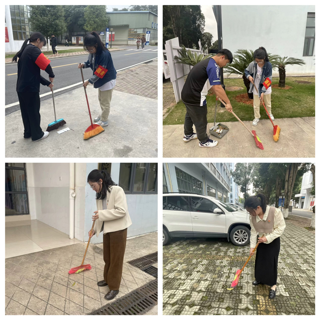 活动中,支部教师党员和积极分子们分工协作,对笃行楼及周边认真地清扫,并对路过的同学开展“无烟校园”的宣传,引导广大同学公共场合不吸烟,倡导健康、文明的生活方式。经过大家的共同努力,笃行楼变得更加整洁干净,学习环境得到了明显改善。