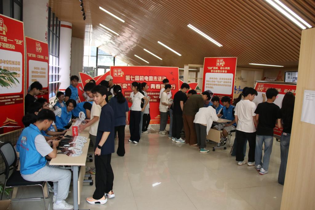 为赓续红色血脉、大力弘扬红色文化,深度挖掘并传承党史、新中国史、改革开放史、社会主义发展史、中华民族发展史等“五史”精神财富,切实增强团员青年的责任感与使命感,营造昂扬向上、富有红色底蕴的校园文化氛围,4月19日下午,由校团委主办,先进制造技术学院团委、“先行”辅导员工作室联合承办的“‘五史’铭于心,青春笃于行”——“五史”知识学习分享活动在学生一站式服务大厅开展。此次活动也是学校机电周末系列活动之一,学院学生干部、入党积极分子、团员青年参加了活动。