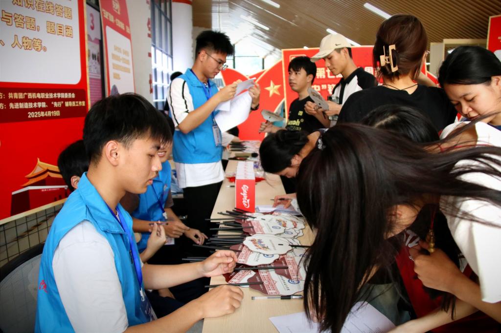 活动现场,“五史”知识竞答活动吸引了众多同学的驻足。题目紧紧围绕“五史”重要事件、人物等展开,同学们或通过易班平台进行线上答题闯关,或在活动现场积极思考、认真作答,在兼具知识性与趣味性的活动中重温历史,提高了同学们的学习兴趣,增强了历史认同。