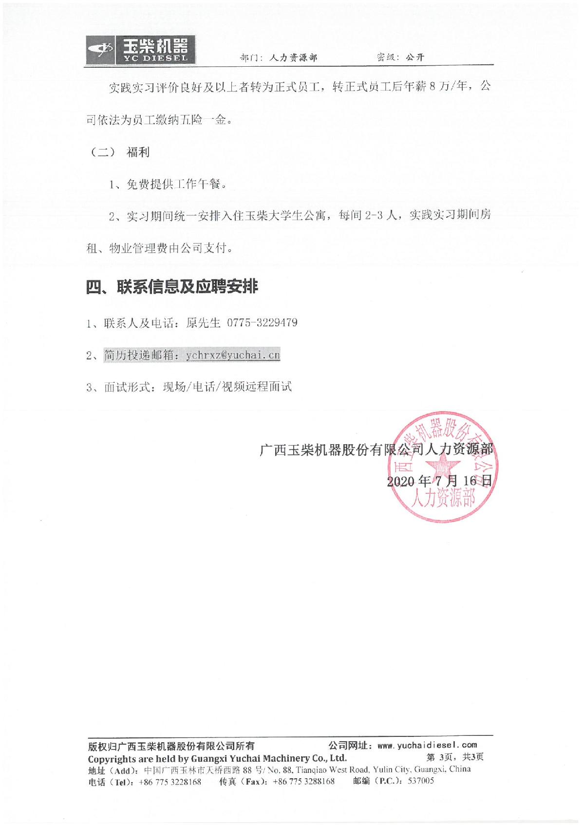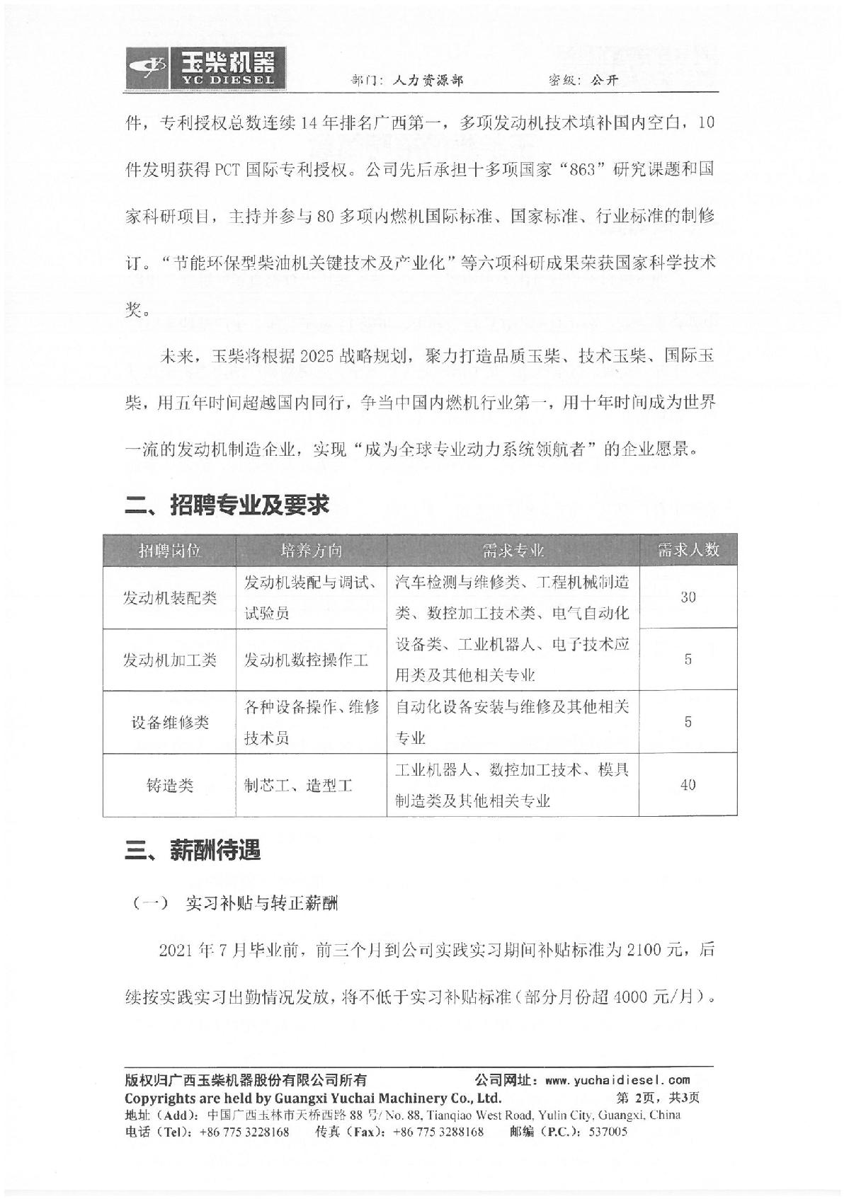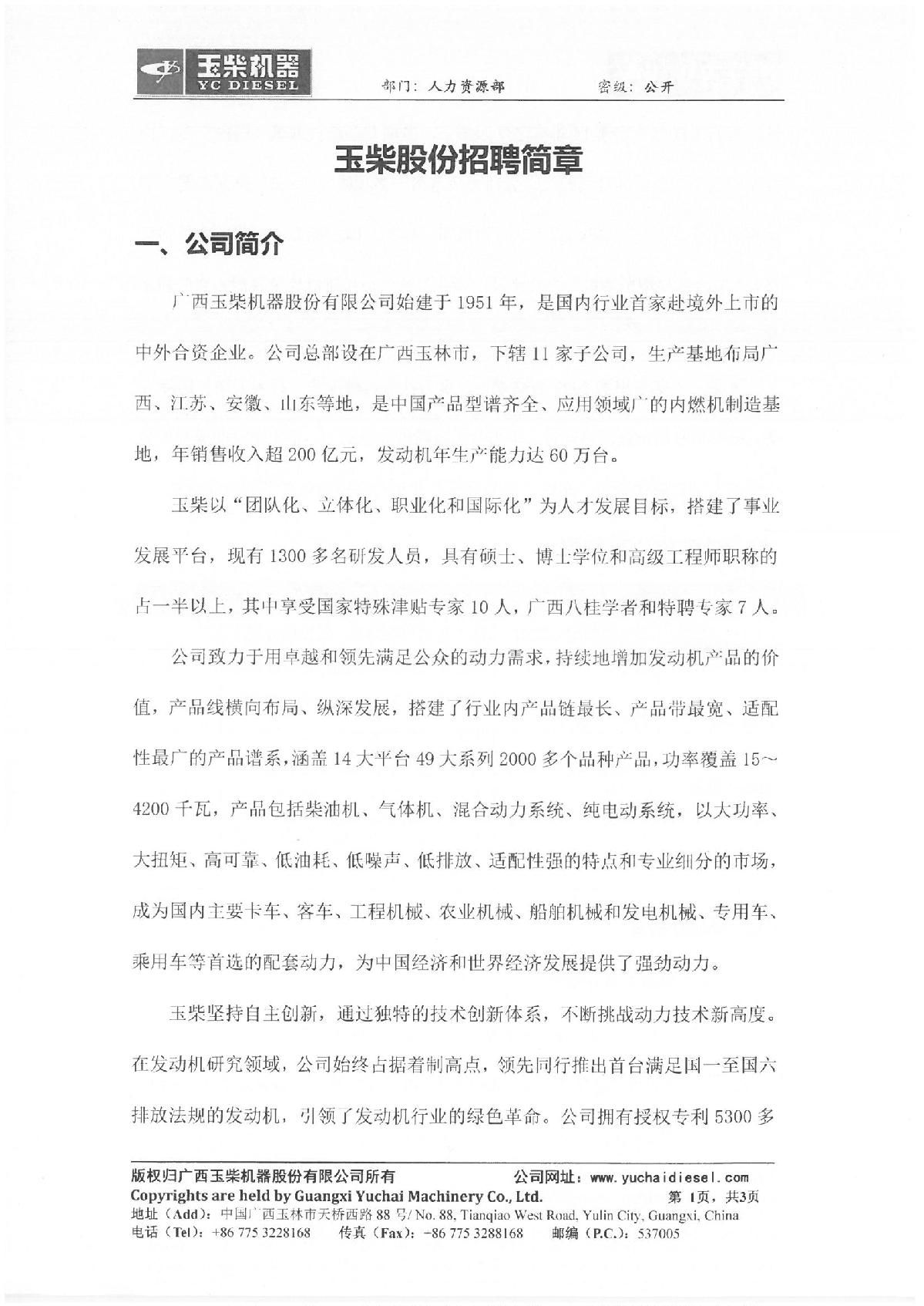玉柴股份招聘简章