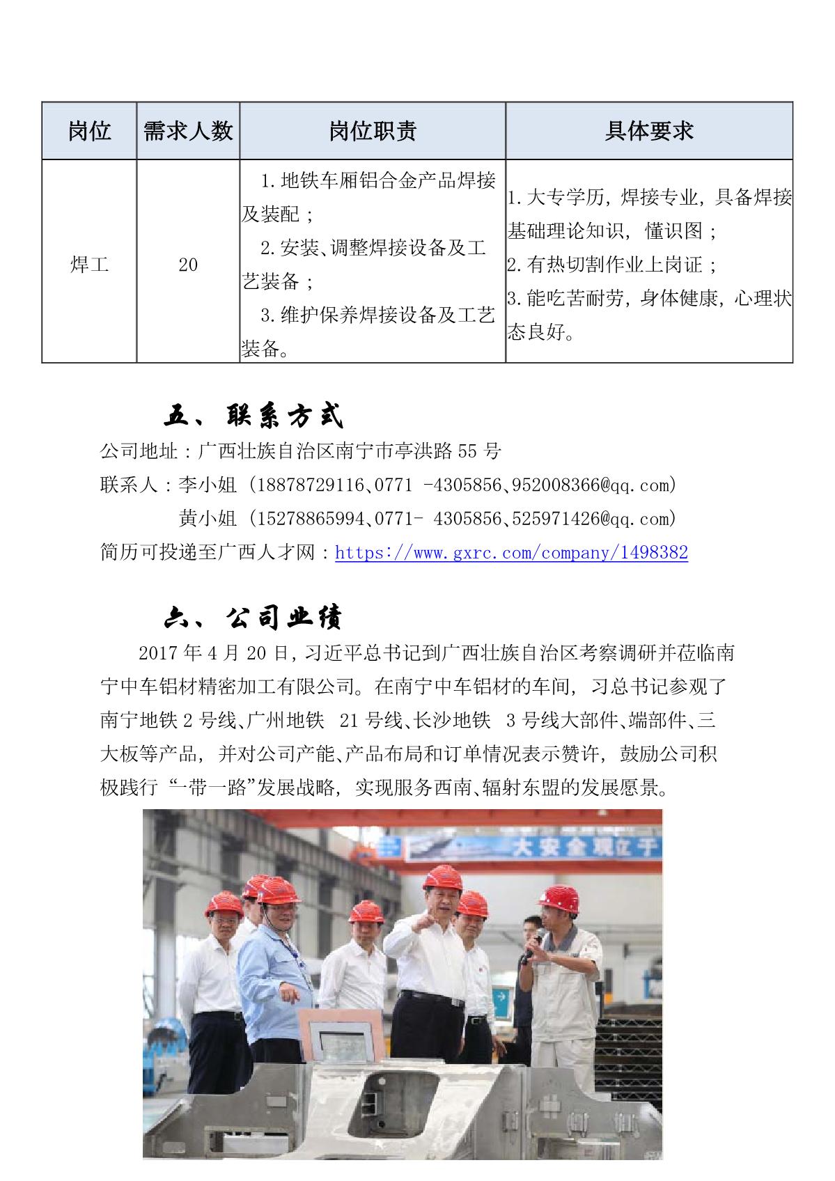 南宁中车铝材精密加工有限公司招聘简章