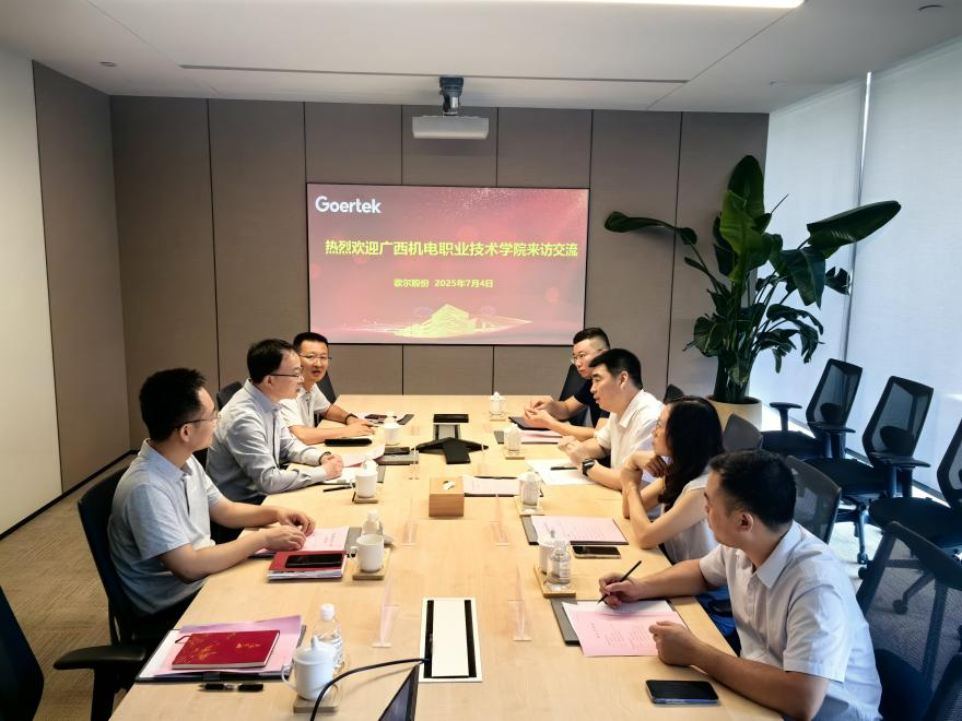 7月4日上午,团队一行来到潍坊歌尔股份有限公司,在公司人力资源产教融合总监李高峰带领下,团队参访了智能仓储、GoerLife和光电园展厅,对歌尔股份有限公司在智慧物流、智能制造、虚拟现实(VR)技术、音频产品和歌尔生活等领域的最新成果有了全面了解,加深了对企业的认识。