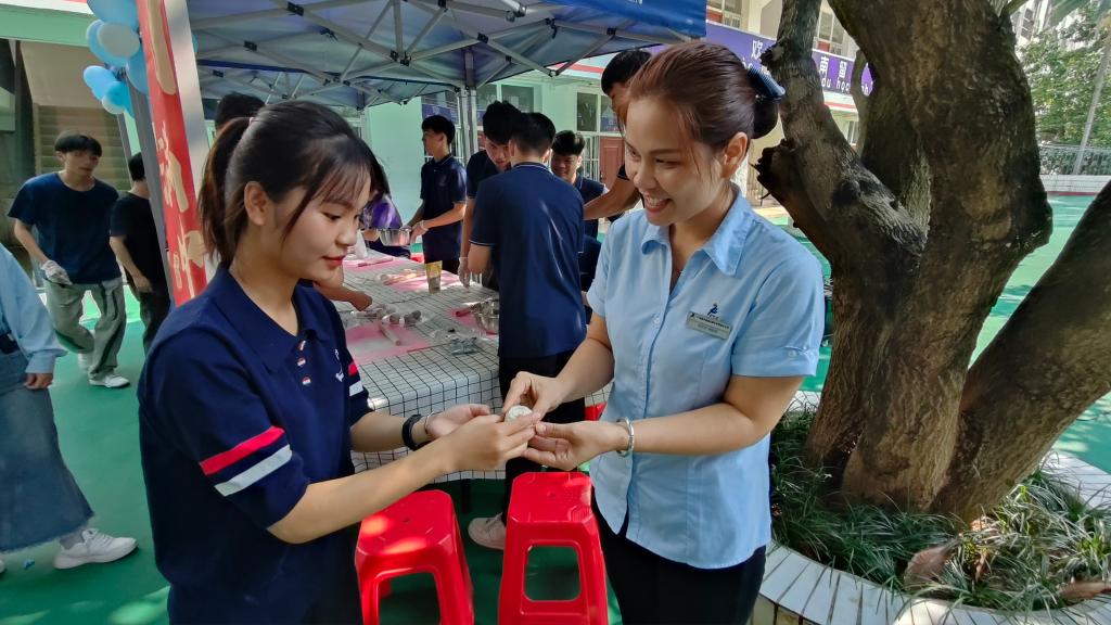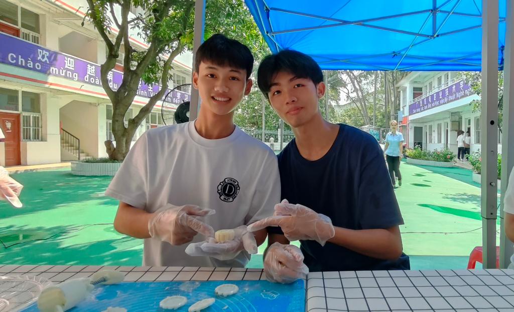 月饼是中秋传统美食,也是中国文化的载体。活动中,中越学生一同动手制作月饼,现场气氛热烈,欢声笑语不断,小小月饼拉近了两国青年的距离,搭建起文化交流和情感交融的桥梁。
