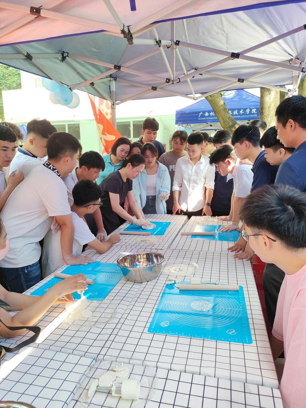 师生们认真学习月饼的制作方法