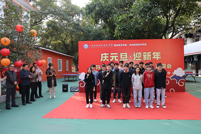 热闹喜庆的舞狮表演拉开了游园会帷幕。吴世先代表学校向全体国际学生致以诚挚的节日问候,并围绕“尽情享受”、“满怀期待”和“衷心祝愿”三组关键词,送上了热情洋溢的新年祝福。他希望国际学生们充分享受节日文化,在辞旧迎新的节庆氛围中感受中国文化的深厚底蕴和独特魅力;对国际学生迅速适应和喜爱机电生活表示由衷的欣慰,期待他们未来能成为促进中国-东盟国家之间友好交流的桥梁、使者;他祝愿同学们新的一年里学习进步、生活愉快,携手迎接更加美好的未来。