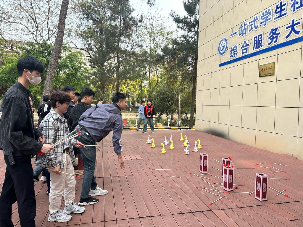 此外,越南留学生们还积极参与校园地标打卡、民族游戏投壶、套圈等互动,在文化交流中架起中越友谊的桥梁。