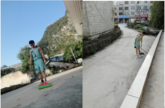 (图为设备2103班潘高峰在家乡参加城乡清洁志愿服务)