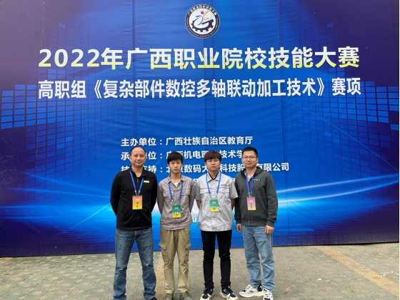 4月18日,由广西壮族自治区教育厅主办,我院承办的2022年广西职业院校技能大赛高职组“复杂部件数控多轴联动加工技术”赛项在万象城官网顺利举行。万象城官网数控1903班庞万炫、2107班廖文富同学组成的参赛队获得第一名,这是自2010年该赛项开办以来我院取得的六连冠。