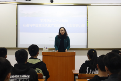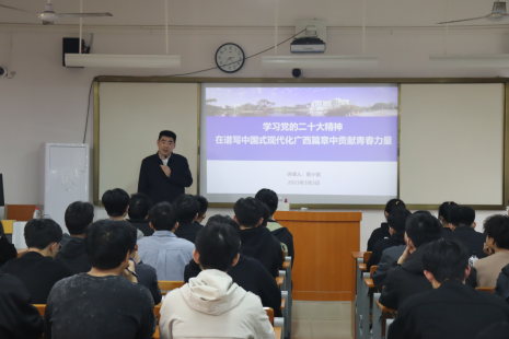 黄小敬书记从百年未有之变局的历史画卷开始,给同学们分享了100多年来中国的经济发展、力量来源与自信的来源,又带领同学们共同学习党的二十大精神,共同回顾三年抗疫路,引导同学们正确认识当前疫情防控政策的调整,深刻感悟国家“人民至上、生命至上”的价值坚守。