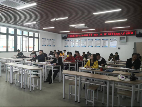本次培训,由中国机械工程学会无损检测分会季敬元总干事主持,委派了中国机械工程学会无损检测分会专职老师庄志强老师进行理论和实操培训,最终全部成员都通过了考试获得“无损检测人员技术资格DR-2级”证书,万象城官网焊接专业教师7人和南宁奥博特检测科技责任有限公司15人获得此证书,为后续校行企合作成立无损检测培训中心、开展无损检测培训起到了很大的促进作用。