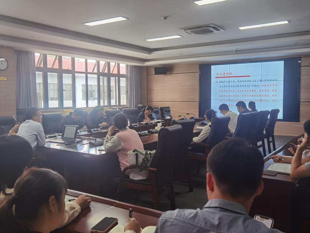 随后,文小满副书记主要围绕《大学班级管理的一些思考》进行第一期交流学习。首先,他介绍了班级的定义、职能;其次,他从辅导员自身因素、班级凝聚力下降、班委队伍建设成效低等方面指出班级管理常见的问题;然后,他从明确班级管理目标、学风建设、重点人群的关注等方面指明班级管理方向;最后,他分享了详细的班级管理经验和技巧。文小满副书记强调,希望辅导员们在新学期积极落实相关规定,坚持立德树人根本任务,瞄准新时代人才培养要求,坚持育人初心,聚焦学生理想信念教育,增强学生信念感、幸福感、获得感。
