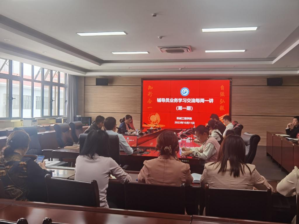 为深入学习贯彻习近平新时代中国特色社会主义思想和党的二十大精神,进一步聚焦辅导员主责主业,深耕专业成长,切实推动我院学生工作提质增效,着力打造一支政治强、业务精、纪律严、作风正的高水平学生管理队伍。机械工程学院于10月11日中午12点在笃行楼507会议室开展了辅导员业务交流学习第一期活动。第一期业务交流学习会由机械工程学院党委副书记、副院长文小满主讲,全体专、兼职辅导员参会。