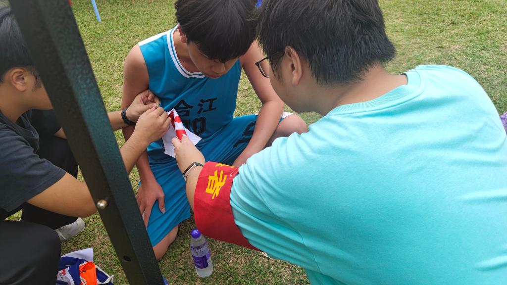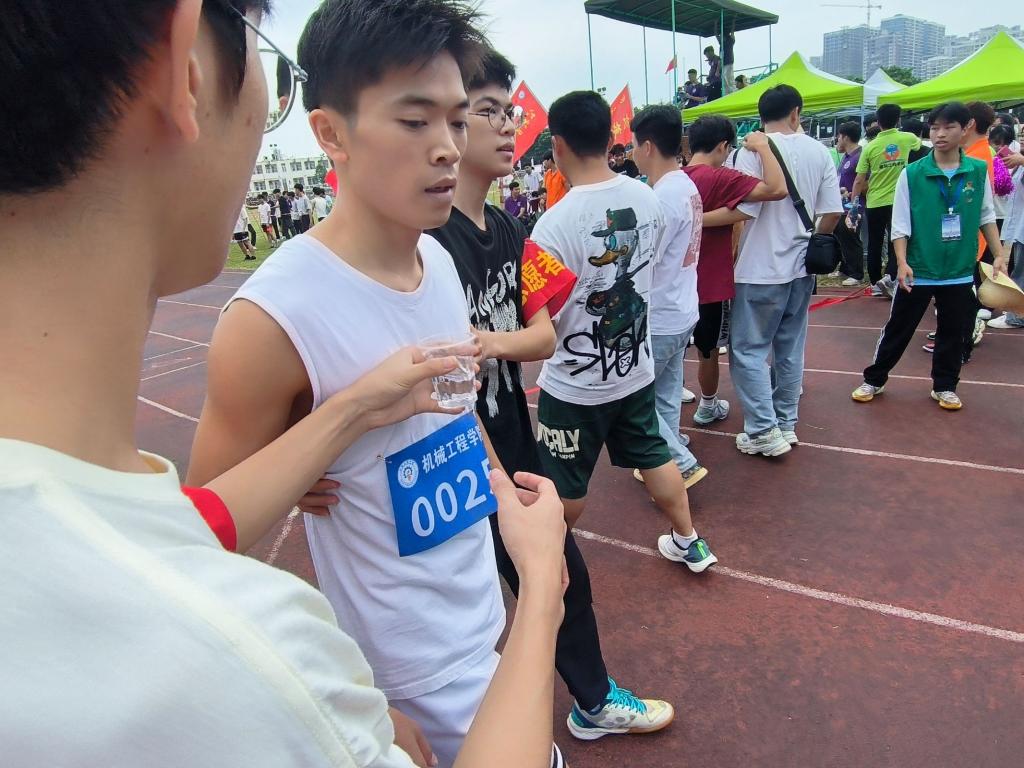 清晨,志愿者们便提前准备好医药箱、矿泉水及葡萄糖。并将需要的桌椅板凳等物资搬运到机械工程学院大本营,完成物资的清点与管理。比赛期间,“红袖章”们服务在赛场的各个角落。从及时的医疗防护到快速跑至终点线旁迎接完赛的同学,从举起相机奔波于赛场的各个角落到俯身清扫垃圾。志愿者们分工明确,各司其职,闲暇之余撰写了一封封激昂的加油稿为机械健儿们加油鼓舞。志愿者们细致耐心地为机械运动健儿提供方便,做好每一项服务保障工作,让“红袖章”成为校运会期间一道靓丽的风景线。