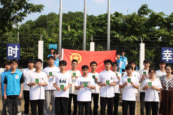 入团仪式在庄严的国歌声中拉开帷幕。首先由主持人黎云烽同学宣读举行入团仪式的意义并宣布2023年度新发展团员名单,本次共有14名同学加入团组织;紧接着由新发展团员代表白金田同学发言,他表达了加入共青团的激动心情,并表示将立志以良好的精神姿态、饱满的青春热情,争做新时代优秀团员;在团干部莫松铭同学的领誓下,新老团员面向团旗庄严宣誓,团委书记为新发展团员佩戴团徽。