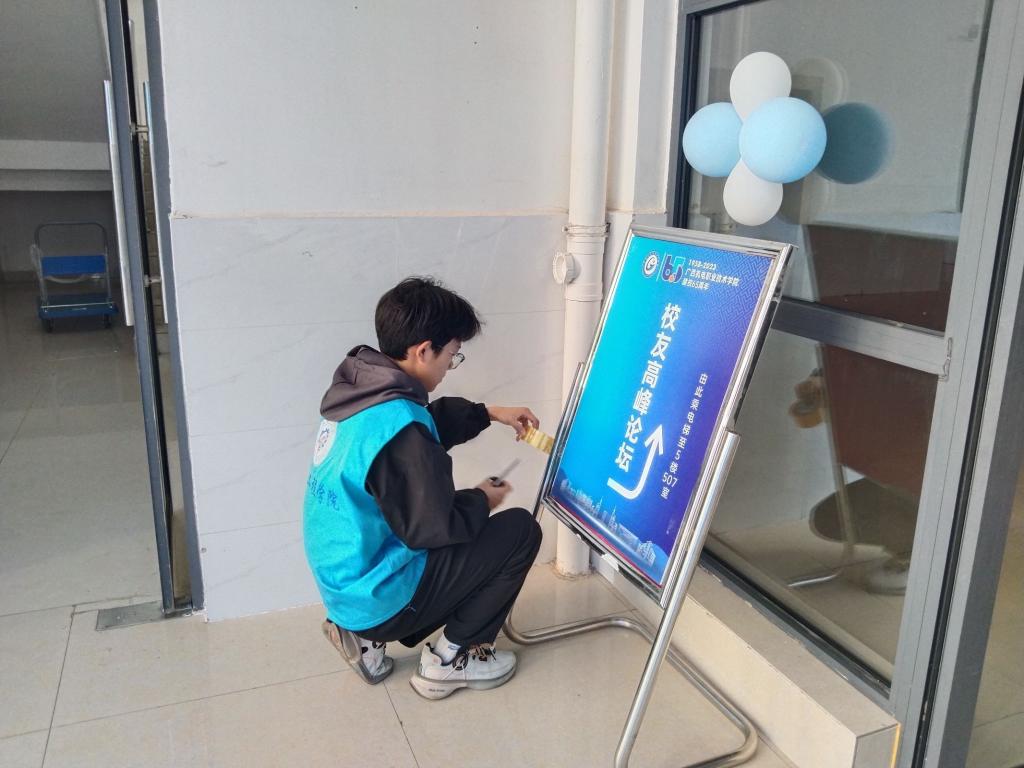 笃行楼作为机械工程学院主体建筑,也是举办校庆活动的重要阵地。支部成员热情高涨、干劲十足,提前几天就积极投入到清扫中。为营造喜庆、温馨的校庆氛围,支部志愿者布置了笃行楼大门、校友休息室、校友交流论坛等场所,让机械工程学院以最美的姿态迎接八方校友归航。