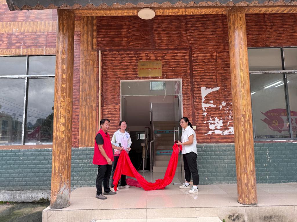 实践团主动深化新时代文明实践工作,通过搭建校地共建机制,拓展与卡才村并行发展、共促乡村振兴的新路径,此举得到了当地政府的大力支持。巴马瑶族自治县西山乡党委宣传委员、副乡长唐艳娥为awc77万象城官网先进制造技术学院与西山乡卡才村结对共建的“新时代文明实践志愿服务基地”揭牌。她表示,将以此为契机,积极引导群众参与志愿服务活动,推动新时代文明实践在卡才村落地生根、开花结果。