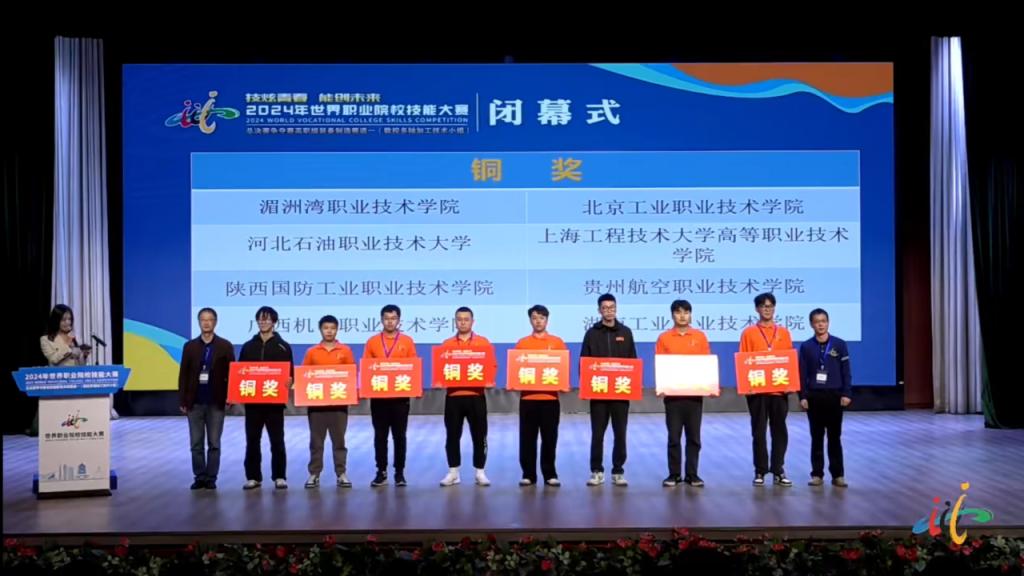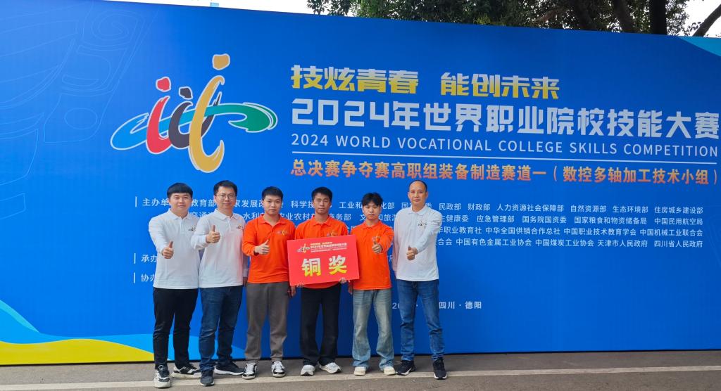 2024年世界职业院校技能大赛装备制造类“数控多轴加工技术”赛项争夺赛于10月30日在四川工程职业技术大学落下帷幕,本次大赛共有来自全国32个省、自治区、直辖市的59支队伍,共计236名选手参赛。经过为期两天紧张激烈的比拼,由我院廖剑斌、李彬文老师指导,数控2107班赵友红、数控2204班李炫志、数控2302班覃炳隆同学组成的参赛队获得了团体铜奖。