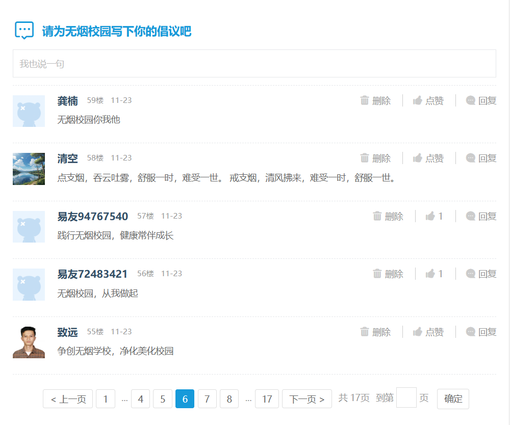 易班平台上的无烟宣言