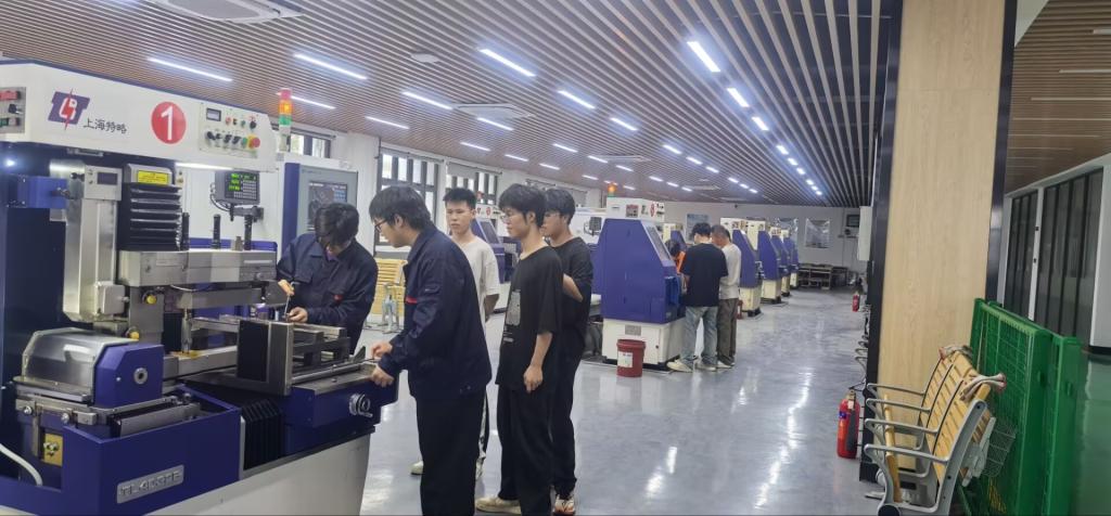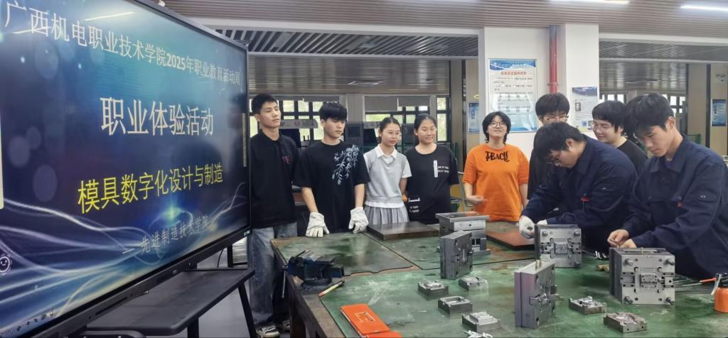 本次活动聚焦模具行业前沿技术数字化赋能,揭秘智能制造全流程。在实训室内,模具专业师生团队通过“理论讲解+实操演示+互动体验”的形式,生动呈现了模具从数字化设计到精密制造的全链条流程。设计环节中,学生现场操作UG等工业软件,展示模具的三维建模与仿真分析,动态展示参数化设计、模流分析等核心技术;制造环节中展示了多轴加工中心、精密电火花机床等高端设备作业,演示了将数字化图纸转化为高精度模具实物的过程;装配实践环节中,参与者分组协作,在指导下完成模具组件的装配调试,切身感受精密制造标准对产品质量的关键性影响。