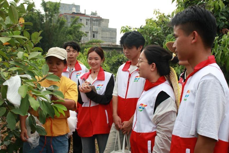 随后,实践团调研的脚步来到了良江村的番石榴水果基地和黑黄皮基地,通过与基地负责人交流访谈,深入了解生态农业的发展现状和成功经验。据悉,该村已成功创建了番石榴、荔枝、火龙果、黑黄皮等多个生态农业基地,并凭借特色产业和交通区域优势,建成广西钦州首个城乡融合发展试验区乡村振兴教学点,探索出“农文旅学”融合发展新路径。