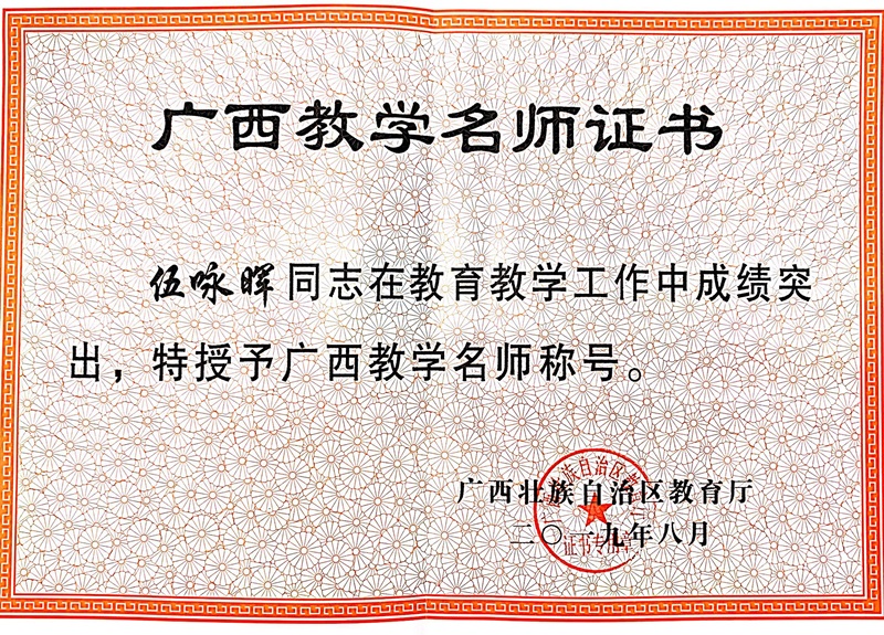 多次获得自治区工信厅和学校 “优秀教师”称号;获全国机械职业教育教学成果和广西职业教育教学成果二等奖各1项;获广西信息化教学能力大赛二、三等奖3项;指导学生参加职业院校技能大赛多次获国赛二等奖、区赛一等奖。