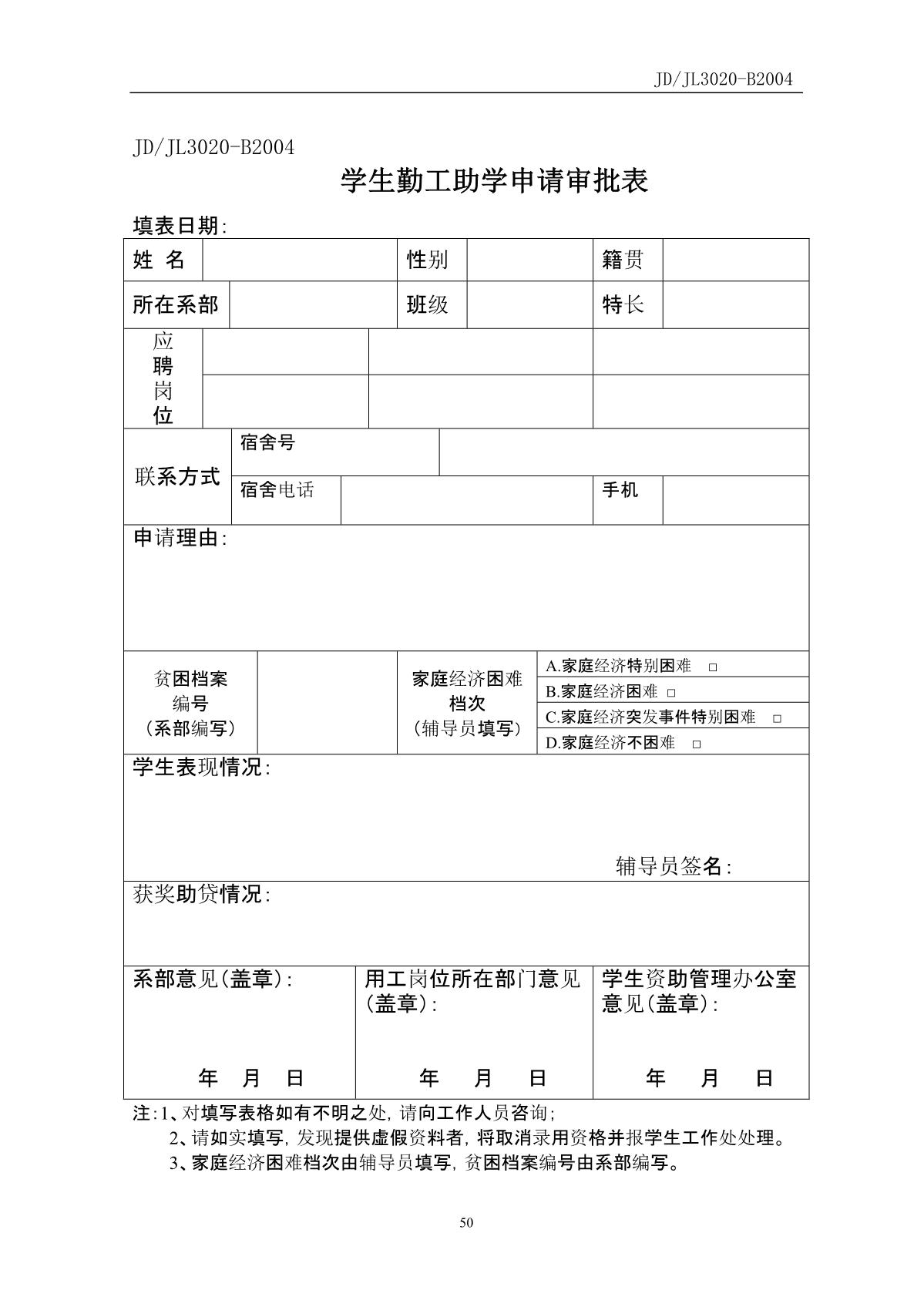 awc77万象城官网学生勤工助学申请审批表
